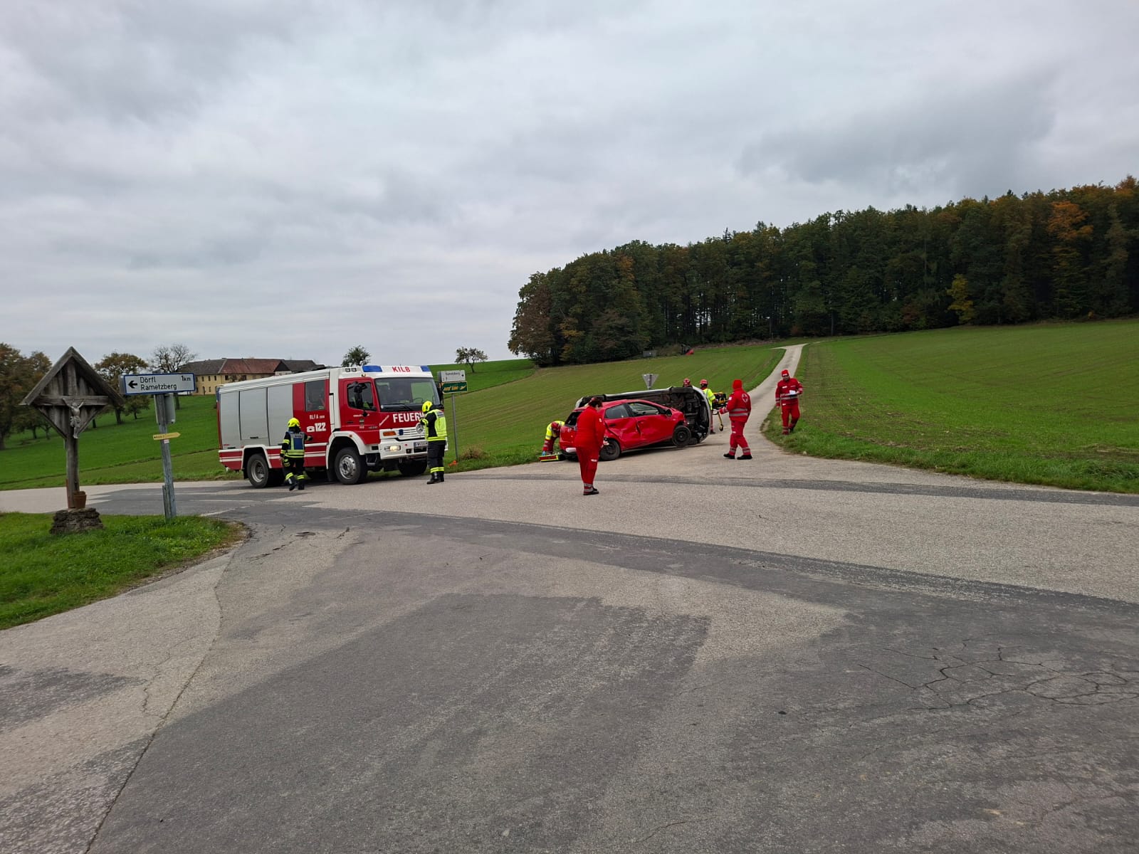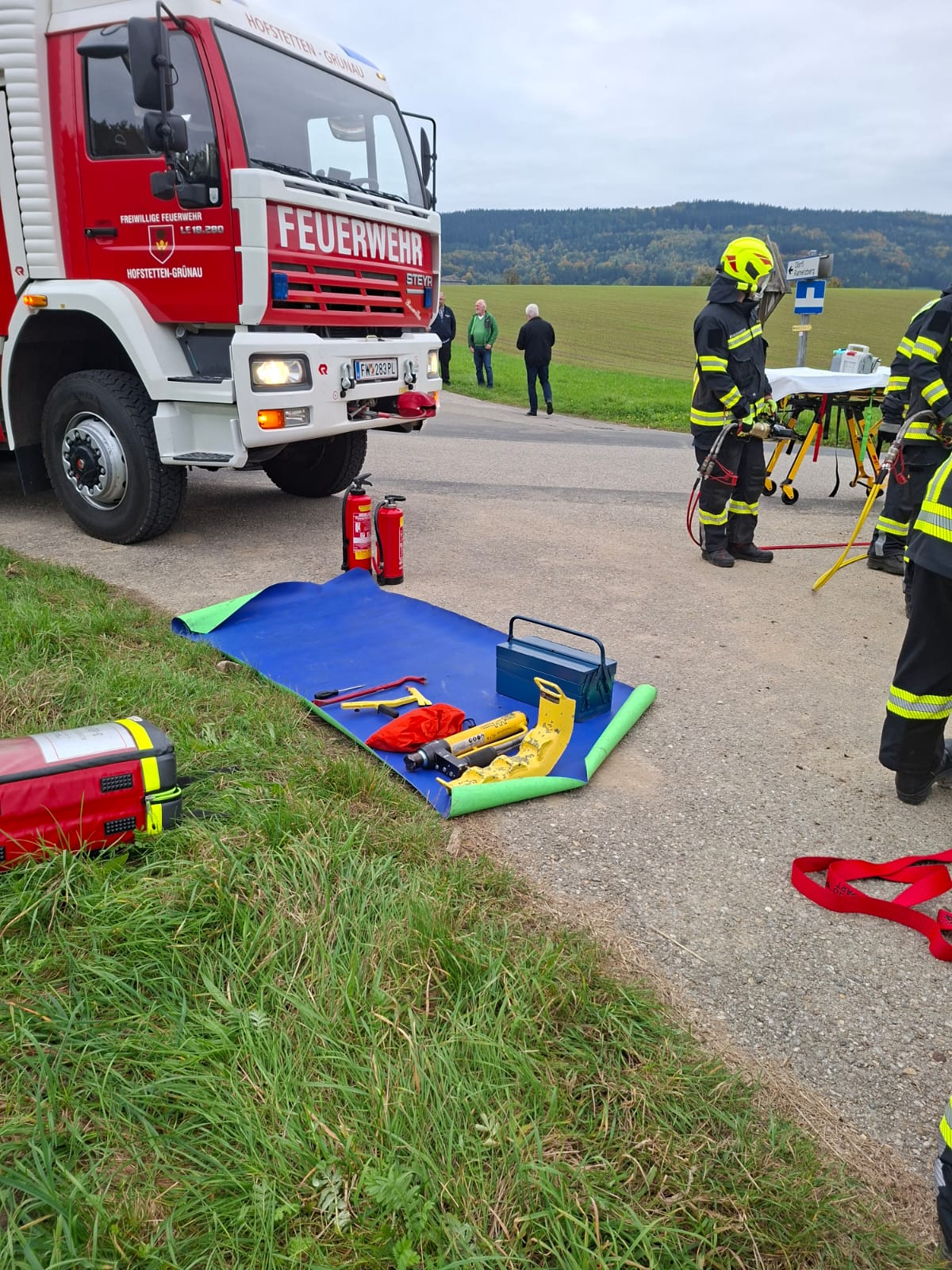 Am Sonntag dem 12. Oktober fand gemeinsam mit der FF Hofstetten-Grünau und dem Roten Kreuz Melk-Süd eine Übung am Rametzberg bei der Kreuzung Pitterle statt.